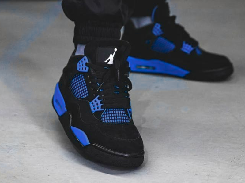 Upgrade your sneaker collection with the Air Jordan 4 Blue Thunder. This pair is our customers' top pick with it's vibrant and unique colourway. Whether you're a sneaker fan or just love to stand out, these shoes are your perfect pick.